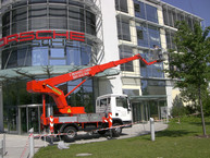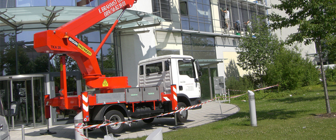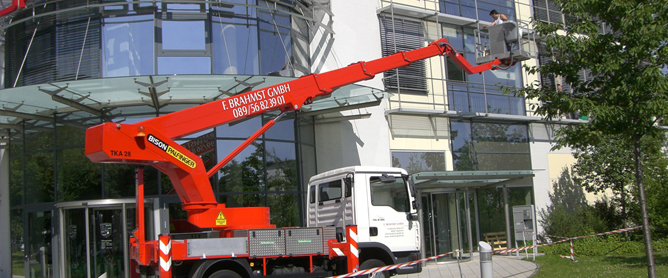 Die F. BRAHMST GMBH führt seit vielen Jahren bereits alle Arbeiten der klassischen Gebäudereinigung im Großraum München und Oberbayern durch. Angefangen von der einfachen Glasreinigung bis hin zur Fassadenreinigung an großen Objekten. Die Reinigung erfolgt normalerweise mit Hochdruckreinigern oder Strahlgeräten. Mit unseren eigenen Arbeitsbühnen und Hubsteigern sind wir in der Lage, auch grössere Flächen schnell, gründlich und preiswert zu reinigen, da kein Gerüst benötigt wird.